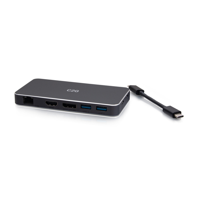 C2G Estación de conexión USB-C 7 en 1 Dual Display MST con HDMI, DisplayPort, Ethernet, USB y alimentación hasta 100 W – 4K 60 Hz. SKU: C2G54543