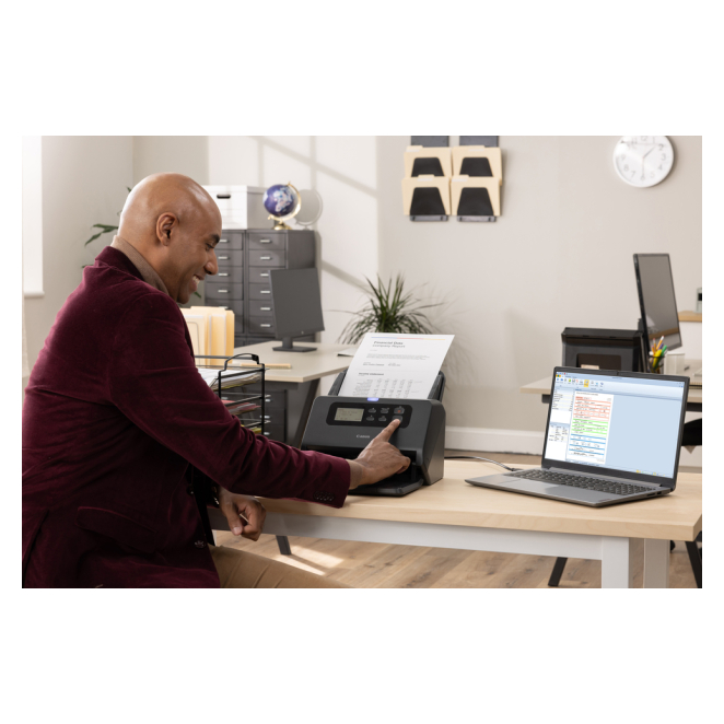 El Canon imageFORMULA DR-M260 está diseñado pensando en la comodidad del usuario. Su interfaz de usuario intuitiva y su pantalla LCD facilitan la navegación y la configuración del dispositivo. Este escáner es fácil de configurar y conectar gracias a su puerto USB 3.2 Gen 2, lo que asegura una rápida transferencia de datos. Su diseño compacto y ligero permite colocarlo convenientemente en cualquier espacio de trabajo. Además, gracias a su baja consumo energético, es una opción respetuosa con el medio ambiente que ayuda a mantener bajos los costos operativos.