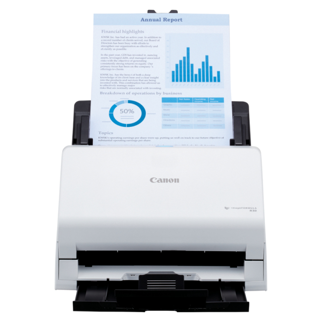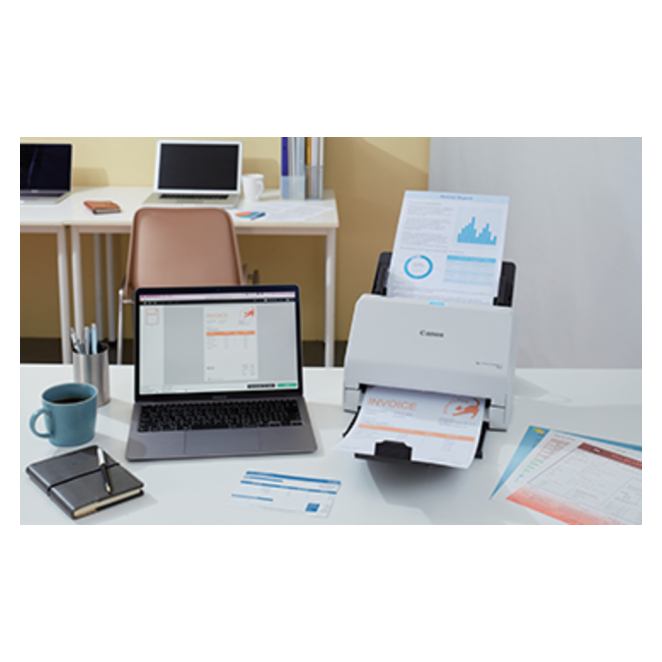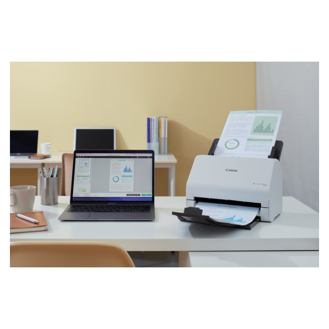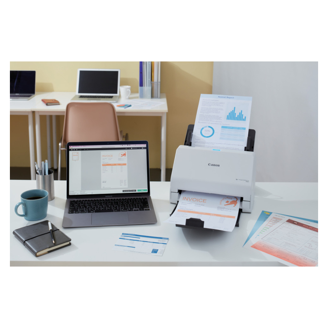 El Canon imageFORMULA escáner puede procesar hasta 30 páginas por minuto, haciendo que el trabajo de escaneado sea rápido y eficiente.