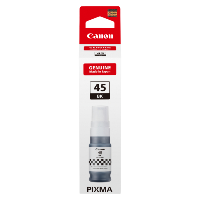 Utilizar tinta original Canon, como el cartucho GI-45BK, garantiza la mejor calidad de impresión y protege tu impresora de posibles daños ocasionados por tintas de baja calidad.