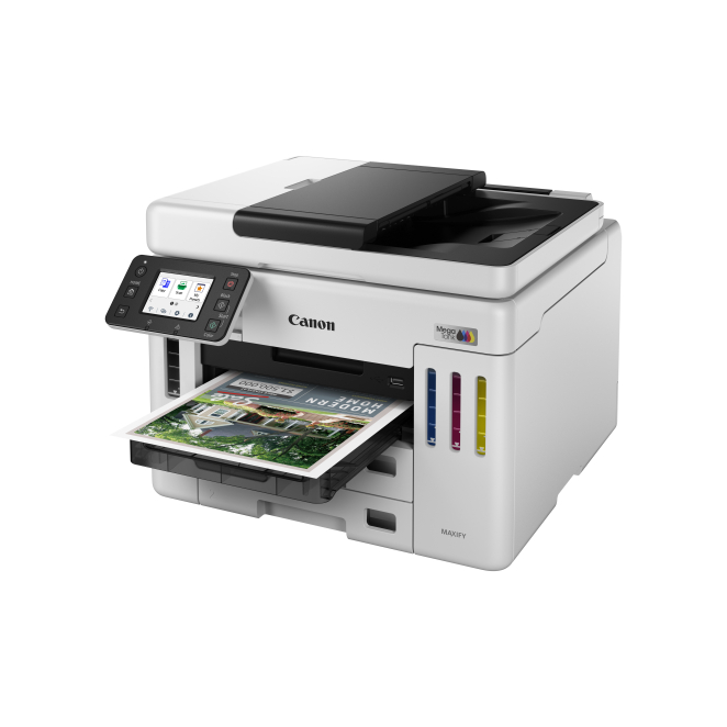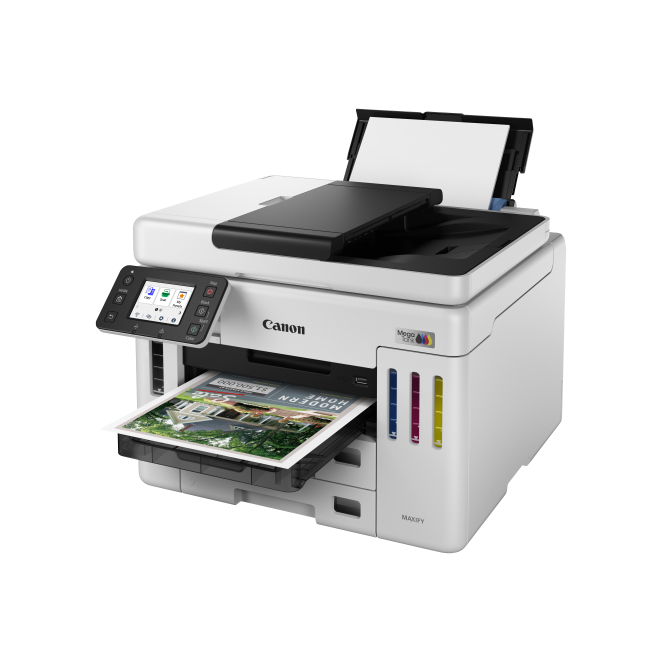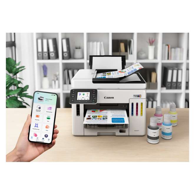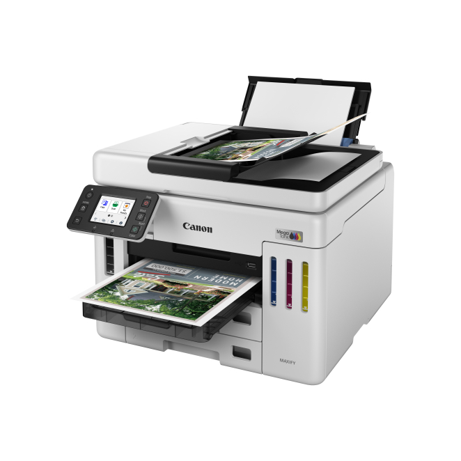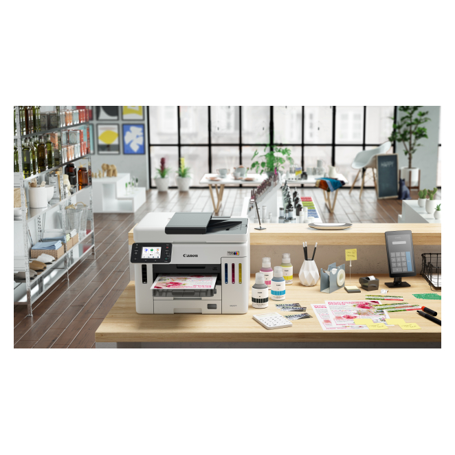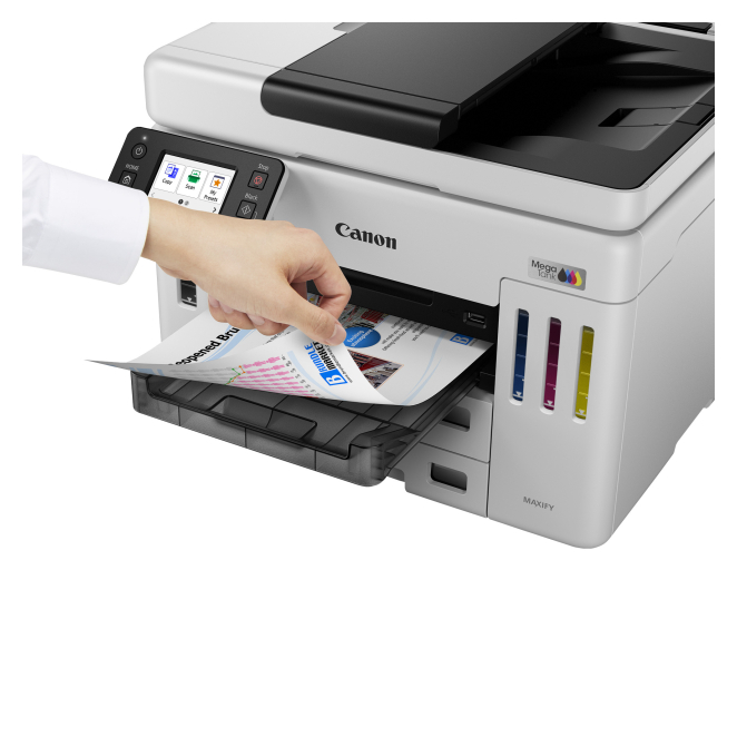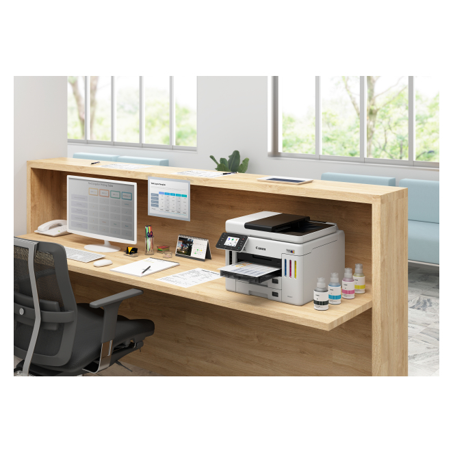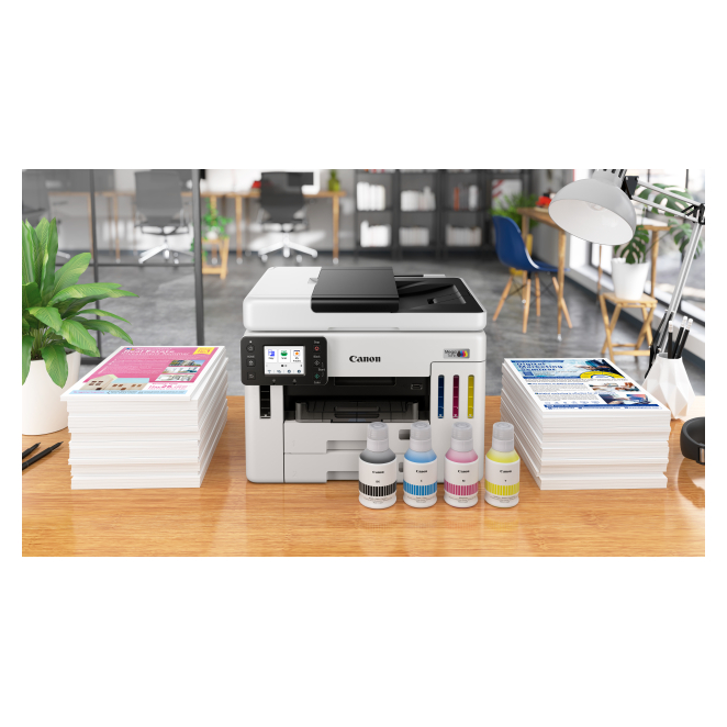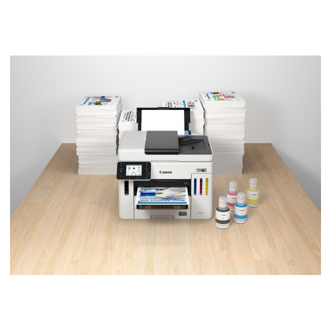 La Canon MAXIFY GX 7150 ofrece múltiples beneficios que transforman la experiencia de impresión de cualquier oficina. Desde su alta velocidad de impresión de hasta 24 páginas por minuto hasta su capacidad de entrada total de 600 hojas.