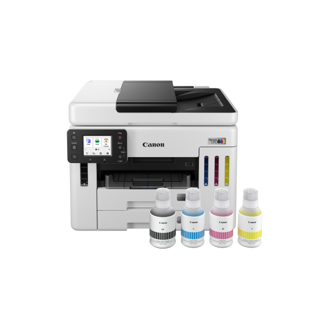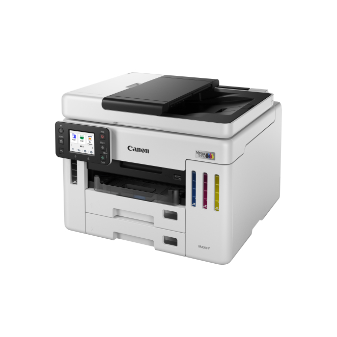 Imagen de la impresora Canon MAXIFY GX 7150, modelo de inyección de tinta A4, resolución 600 x 1200 DPI, con conectividad Wifi. SKU 6880C006.