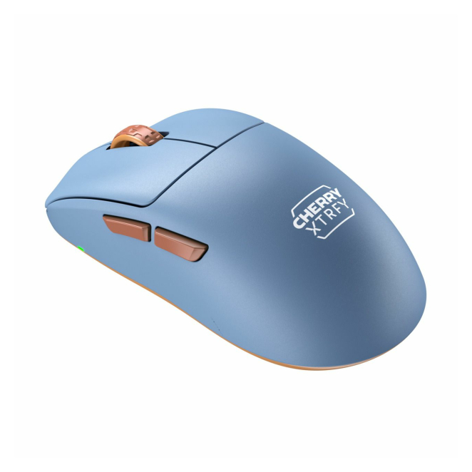Imagen del CHERRY XTRFY M68 Wireless, un ratón inalámbrico con tecnología avanzada, SKU: CX-M68W-BLUE Este producto se puede comprar bajo demanda. Financiado desde: 6,36 € /mes Solicita información en caso de necesitar envío urgente. Métodos de pago: CHERRY XTRFY M68 Wireless – Máxima precisión en tus juegos El CHERRY XTRFY M68 Wireless es un ratón inalámbrico para gaming, diseñado con la colaboración de videojugadores de élite, ofreciendo una experiencia óptima en cada movimiento. Con su exclusiva forma simétrica y una parte frontal ultrabaja, este mouse gaming CHERRY proporciona un control inigualable para cualquier jugador. La tecnología de sensor 3395 de Pixart brinda una resolución de movimiento de hasta 26000 DPI, asegurando una precisión extrema. Gracias a su ligera estructura de tan solo 53 gramos, el XTRFY M68 es perfecto para largas sesiones de juego sin sacrificar la comodidad.