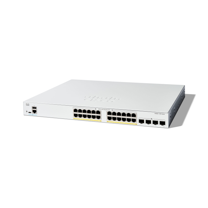 El Cisco Catalyst 1300 cuenta con 24 puertos básicos de conmutación RJ-45 Gigabit Ethernet (10/100/1000).