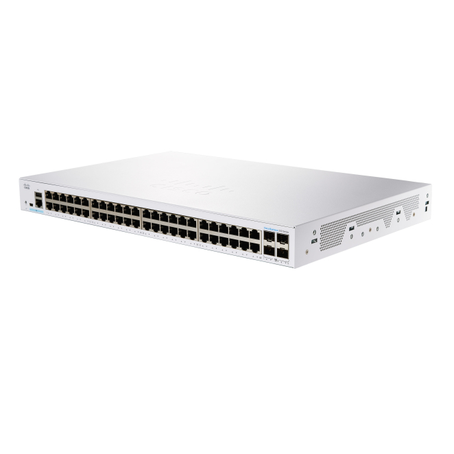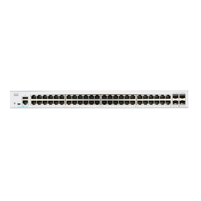 Alta flexibilidad: Equipada con 48 puertos RJ-45 Ethernet Gigabit y 4 ranuras SFP+, el Cisco CBS250 ofrece múltiples opciones de conectividad para adaptarse a diversas configuraciones de red.