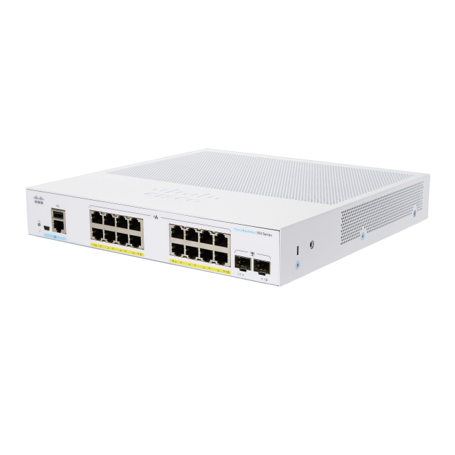 Switch Cisco CBS350 Gestionado L3 con PoE, Gigabit Ethernet y SKU CBS350-16P-2G-UK en color gris para escritorio