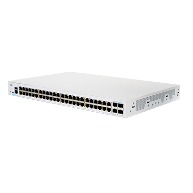 El Cisco CBS350-48T-4G-EU cuenta con 48 puertos de conmutación RJ-45 Ethernet, todos Gigabit Ethernet (10/100/1000).