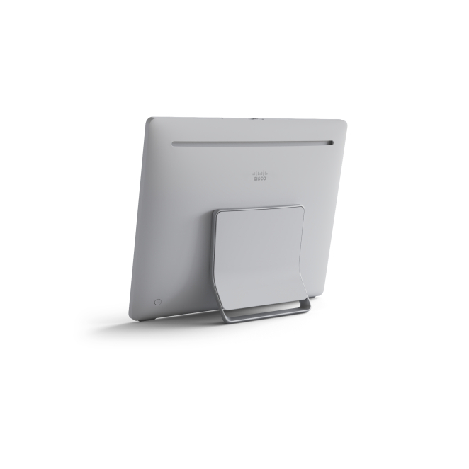 La pantalla del Cisco Webex Desk es de 24 pulgadas, lo que proporciona un área de visualización amplia y cómoda para todos los participantes en la videoconferencia.