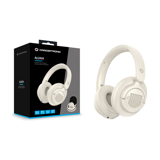 Auriculares Conceptronic ALVAH02C con diadema, Bluetooth, color crema, opción inalámbrica y alámbrica. SKU: ALVAH02C