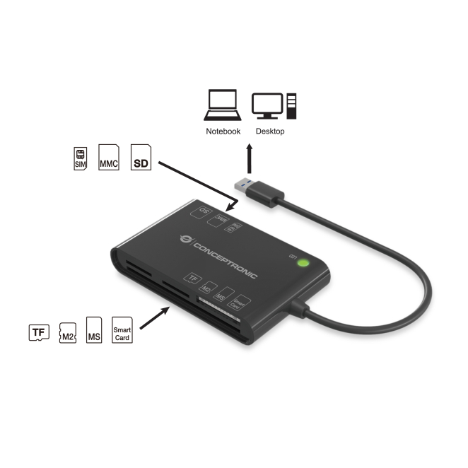 Conceptronic BIAN01B lector de tarjeta inteligente Interior USB 3.2 Gen 1 (3.1 Gen 1) Negro