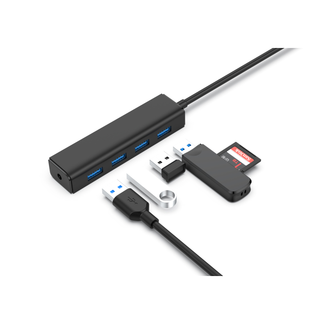 Hub de interfaz USB 3.2 Gen 1 negro de Conceptronic, con 4 puertos Type-A y velocidad de 5000 Mbit/s, SKU C4PUSB3
