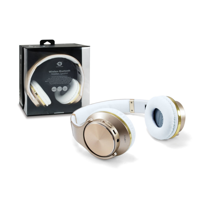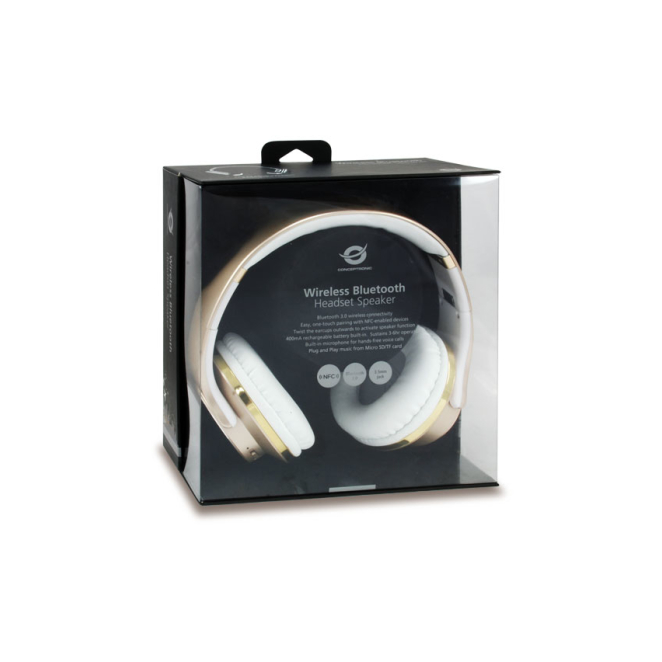 Auricular y casco Conceptronic CHSPBTNFCSPKG con Bluetooth, MicroUSB, color oro y blanco, diadema para llamadas y música
