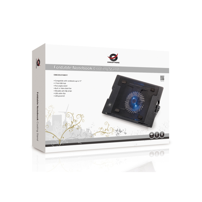 Base plegable de refrigeración Conceptronic para equipos portátiles, ajuste ergonómico, CNBCOOLSTAND1F