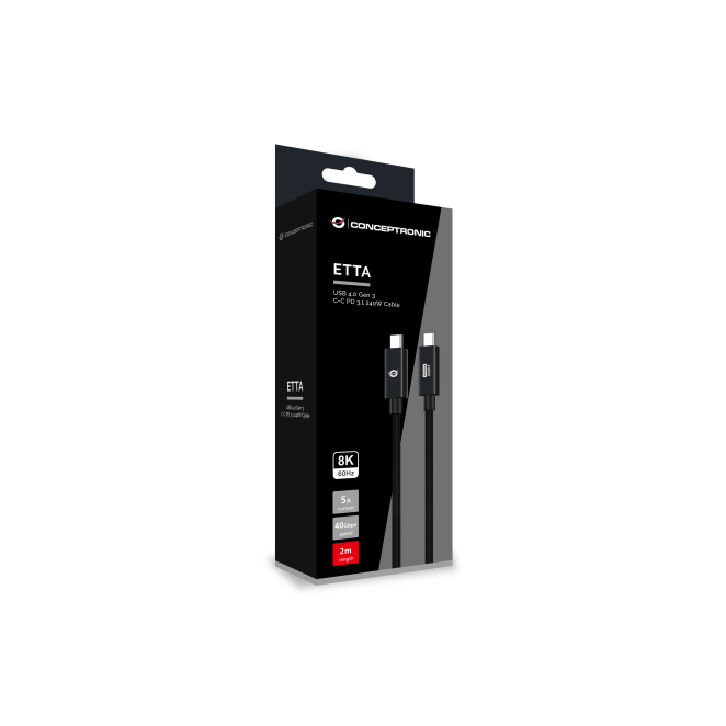 Conceptronic ETTA04B20 cable USB4 Gen 3×2 de 2 metros con conector USB-C en color negro