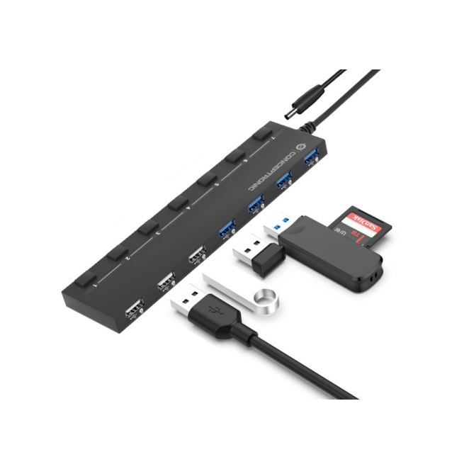 Conceptronic HUBBIES09BP hub de interfaz USB 3.2 Gen 1 (3.1 Gen 1) Type-A 5000 Mbit/s Negro