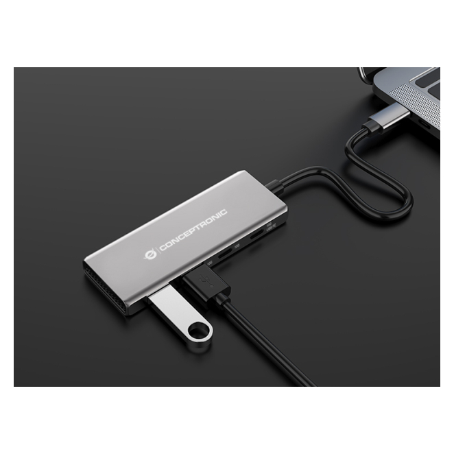Conceptronic HUBBIES15G, hub de interfaz USB 3.2 Gen 2 (3.1 Gen 2) Type-C, velocidad de 10000 Mbit/s en color gris
