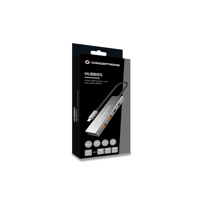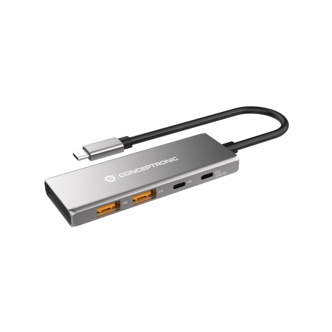 El Conceptronic HUBBIES15G ofrece numerosos beneficios, destacando la alta velocidad de transferencia de datos de hasta 10000 Mbit/s que permite la transferencia rápida de archivos grandes. Además, sus cuatro puertos adicionales, dos USB 3.2 Gen 2 Type-A y dos USB 3.2 Gen 2 Type-C, mejoran la eficiencia multitarea. Con su diseño compacto y portátil, el dispositivo es fácil de transportar y utilizar en cualquier lugar. La carcasa de aluminio no solo proporciona dureza y durabilidad, sino que también le da un aspecto elegante y moderno. Ideal para profesionales y usuarios habituales que necesitan maximizar la productividad.
