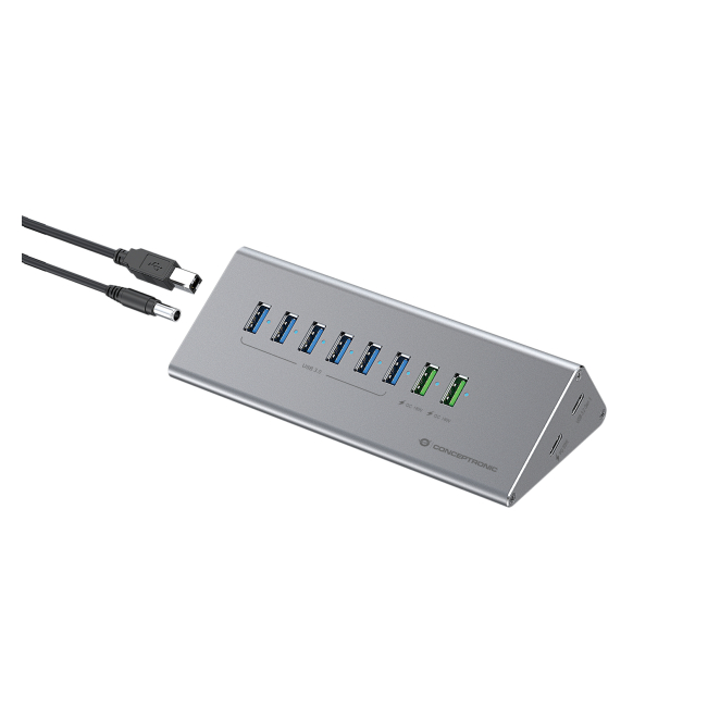 Conceptronic HUBBIES18G aporta múltiples beneficios a tu configuración tecnológica. Su capacidad de transferencia de datos a 5000 Mbit/s proporciona una alta velocidad USB necesaria para tareas intensivas. La inclusión de 10 puertos permite la expansión de puertos USB, asegurando que todos tus gadgets tecnológicos estén siempre conectados y listos para usar. Su diseño compacto y ligero, sumado a una carcasa de aluminio resistente, garantiza durabilidad y una estética elegante. Esta expansión de conectividad es perfecta para el trabajo en oficinas o entornos domésticos que demanden eficiencia y rapidez en la transferencia de datos para diversos dispositivos.