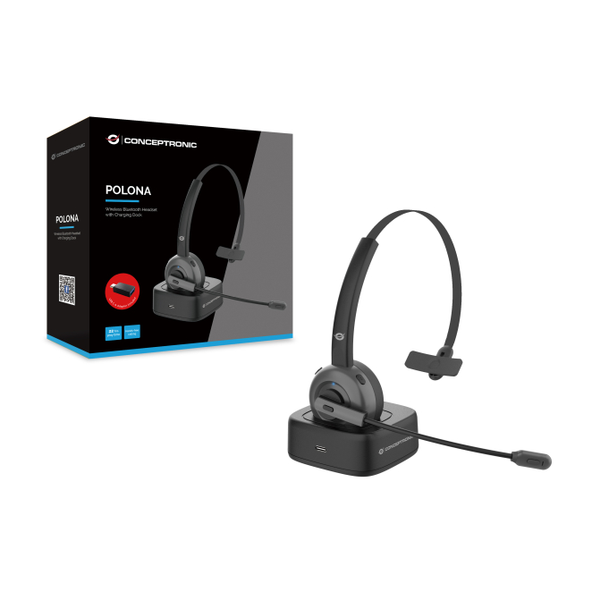Conceptronic POLONA03BD auricular y casco Auriculares Inalámbrico Diadema Oficina/Centro de llamadas Bluetooth Base de carga Negro
