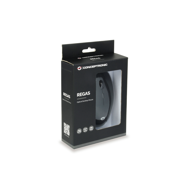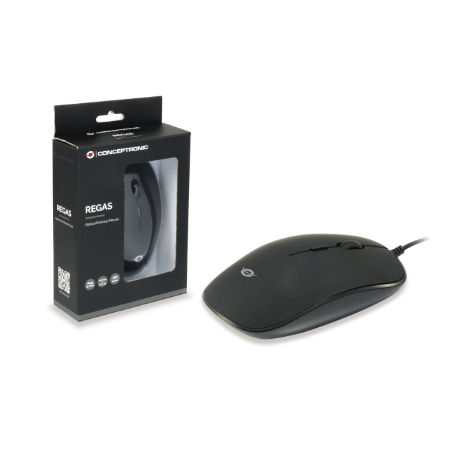 Imagen del ratón óptico Conceptronic REGAS01B diseñado para oficina con 1200 DPI y conectividad USB tipo A. Modelo ambidextro.
