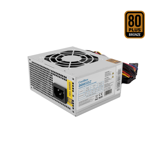 La fuente de alimentación CoolBox SFX 300W 80+ Bronze tiene una eficiencia energética superior al 82%, gracias a su certificación 80 PLUS Bronze.