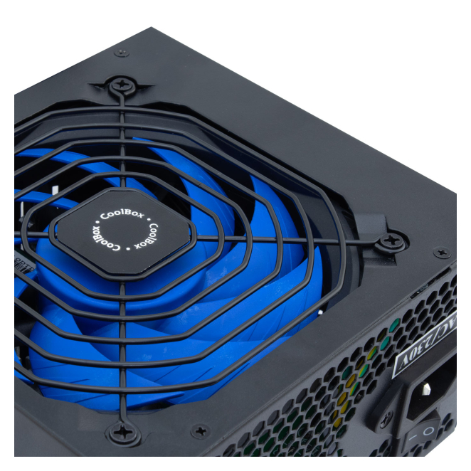 Fuente de Alimentación CoolBox ATX de 750W con certificación 80+ Bronze, compatible con voltajes de 115V-230V, SKU COO-FACPO-750