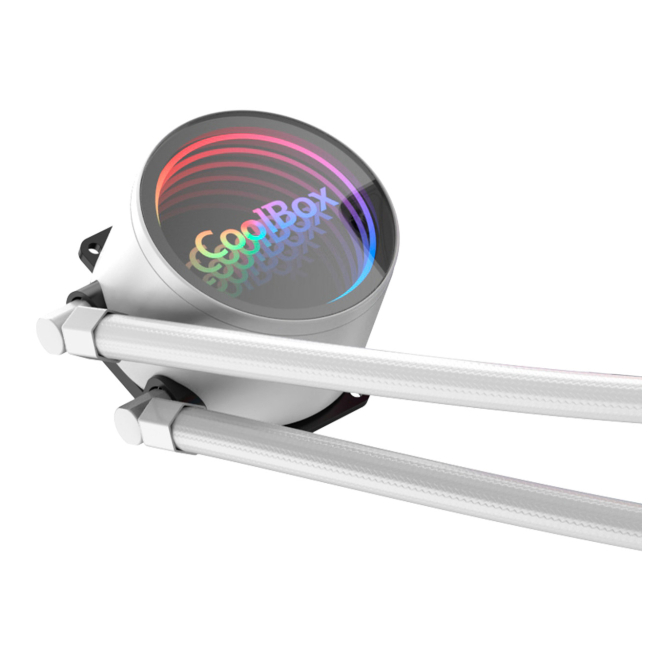 Refrigeración líquida CoolBox GAMING con iluminación ARGB, modelo Infinite Liquid240 en color blanco. SKU: COO-KRL240-4-ARW