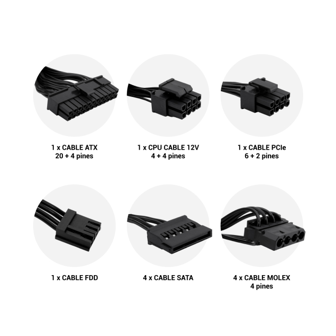 Esta fuente de alimentación cuenta con 4 conectores SATA y 4 conectores Molex, proporcionando versatilidad para diversas configuraciones de PC.