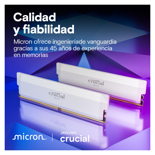 El Crucial Pro CP2K32G64C40U5W módulo de memoria 64 GB 2 x 32 GB DDR5 es ideal para gamers profesionales, desarrolladores, y creadores de contenido que requieren máximo rendimiento y estabilidad. Este módulo de memoria es perfecto para aquellos que buscan actualizar su memoria RAM para mejorar la velocidad y eficiencia de sus sistemas. Además, los entusiastas del overclocking encontrarán en este producto la flexibilidad necesaria para ajustar sus configuraciones según las exigencias de su hardware.