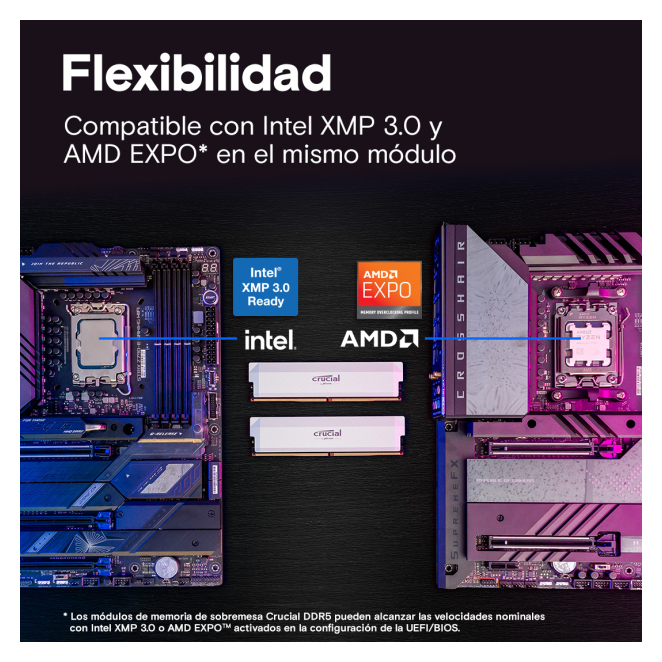 ¿Puedo utilizar el Crucial Pro CP2K32G64C40U5W en sistemas AMD y Intel?