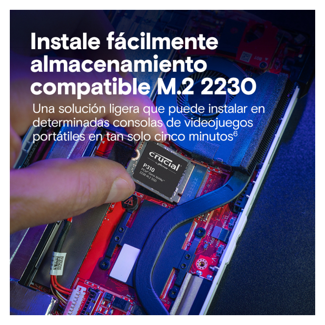 Sí, el Crucial P310 es fácil de instalar y solo requiere unos pocos minutos, lo que lo hace accesible para usuarios con conocimientos técnicos básicos.