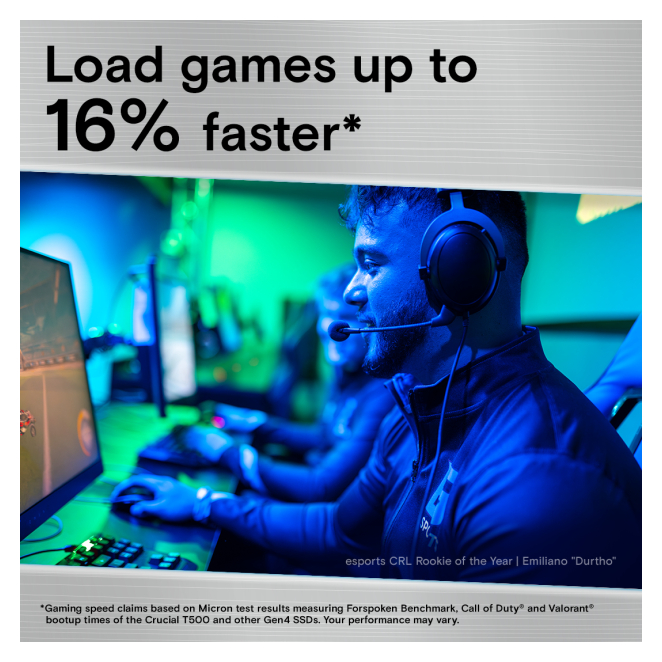 La SSD Crucial T500 es compatible con la mayoría de los PCs y portátiles modernos que cuentan con una ranura M.2 y compatibilidad con PCI Express 4.0.