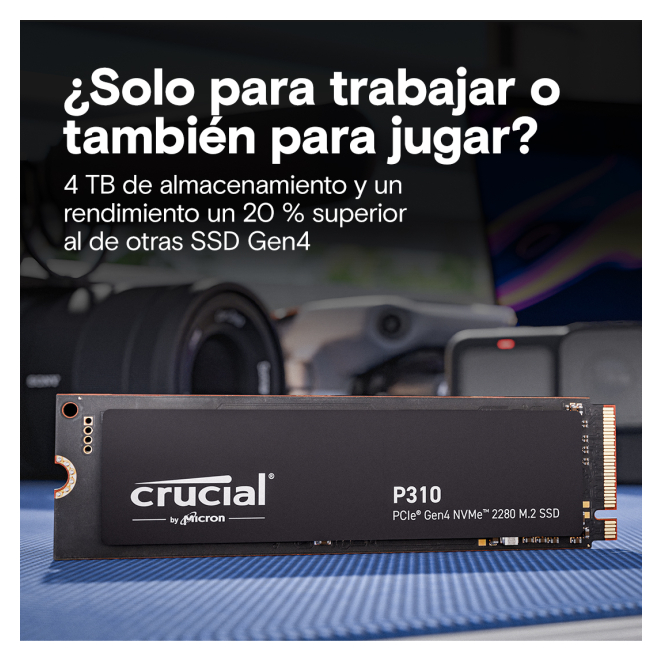 La SSD Crucial P310 4 TB es ideal para gamers, profesionales de la edición y usuarios avanzados que requieren un rendimiento superior. Este SSD Crucial P310 es perfecto para quienes desean potenciar su equipo y disfrutar de cargas rápidas en juegos o aplicaciones pesadas como Adobe Photoshop e Illustrator. Su compatibilidad con PlayStation®5 y PlayStation®5 Pro lo hace ideal también para jugadores de consolas.