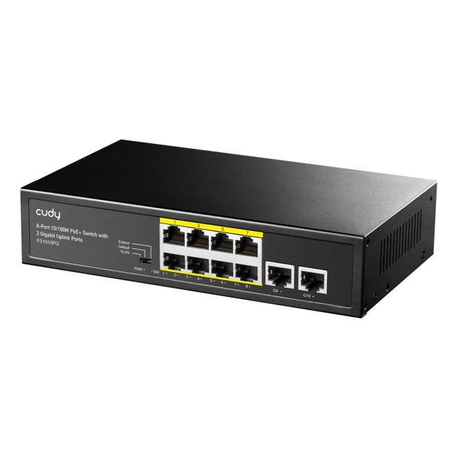 - Optimización de la Energía: Gracias a su capacidad PoE, el Cudy FS1010PG puede alimentar varios dispositivos a través de un solo cable Ethernet, simplificando la instalación de dispositivos como cámaras IP y teléfonos VoIP.