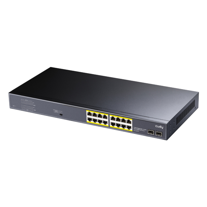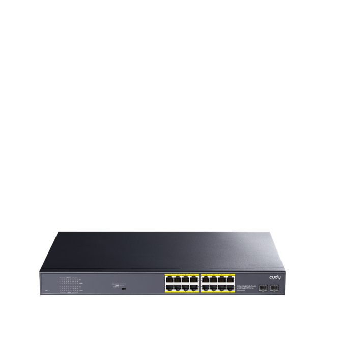 El Cudy GS1020PS2 cuenta con 16 puertos PoE, lo que permite alimentar varios dispositivos a través de Ethernet.