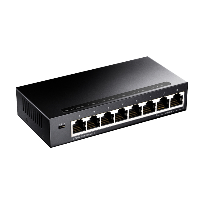 Switch de red Cudy modelo GS108 con 8 puertos Gigabit Ethernet 10/100/1000 en color negro
