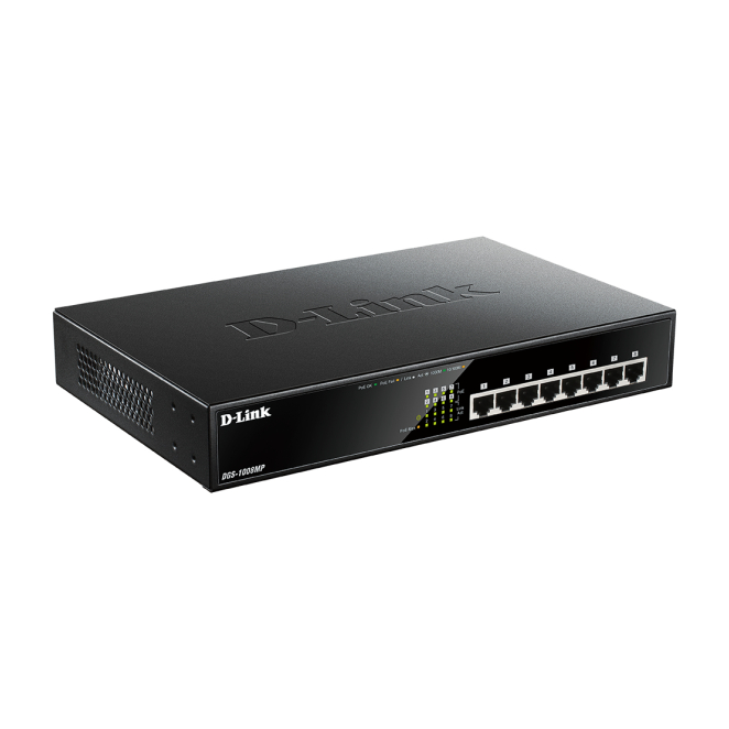 D-Link DGS-1008MP switch no administrado Gigabit Ethernet con PoE, 1U en color negro, SKU DGS-1008MP