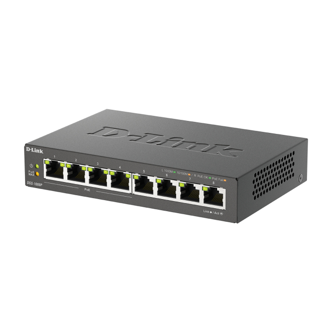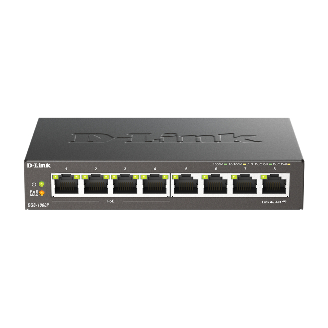Como un switch no administrado, el D-Link DGS-1008P/E no requiere configuraciones técnicas, ahorrándole tiempo y esfuerzo.
