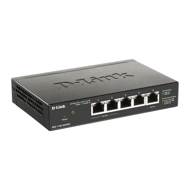 D-Link DGS-1100-05PDV2 switch Gestionado Gigabit Ethernet (10/100/1000) Energía sobre Ethernet (PoE) Negro