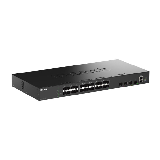 Imagen del switch D-Link DGS-1530-28S/E, gestionado L2 en color negro, con 28 puertos, SKU DGS-1530-28S/E
