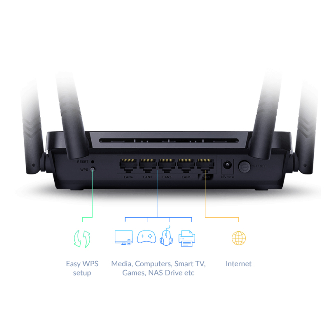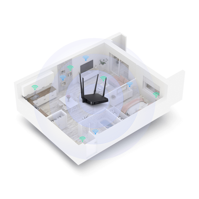 Amplia cobertura: Las cuatro antenas externas aseguran una cobertura robusta en todo tu hogar u oficina.