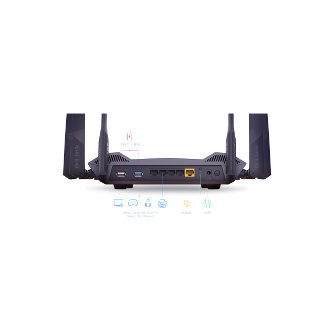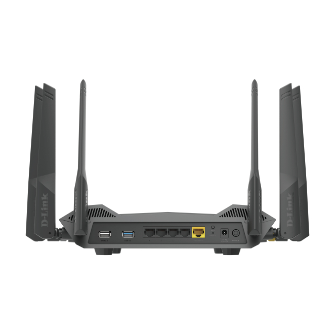 Además de WiFi, el D-Link DIR-X5460 router Gigabit Ethernet Negro cuenta con cuatro puertos Gigabit Ethernet y dos puertos USB para conexiones por cable y almacenamiento compartido.