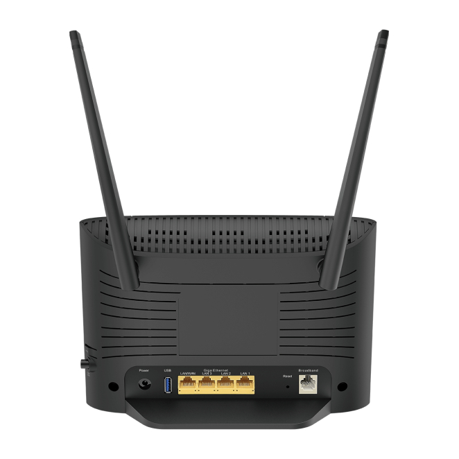 Router inalámbrico D-Link DSL-3788 con Gigabit Ethernet de doble banda (2,4 GHz / 5 GHz) en color negro. SKU: DSL-3788