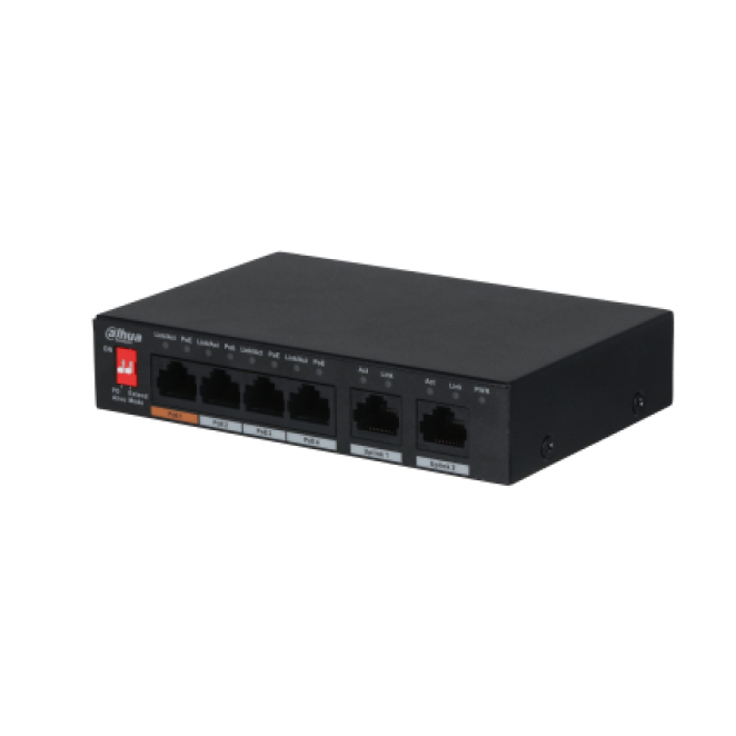 Switch no administrado L2 Fast Ethernet (10/100) con energía sobre Ethernet PoE, color negro, Dahua Technology modelo PFS3006-4ET-60, SKU PFS3006-4ET-60-V2