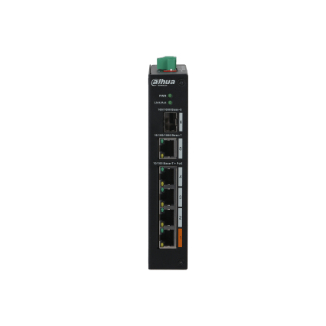 El switch Dahua PFS3106-4ET-60-V2 tiene 4 puertos Fast Ethernet (10/100) y 1 puerto de canal de fibra.