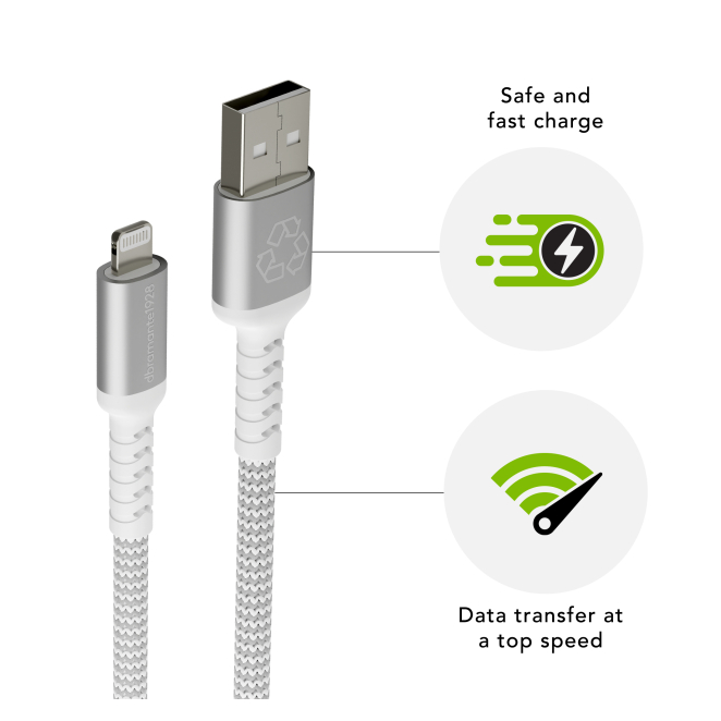 El dbramante1928 CB25ALGR7119 cable de conector Lightning 2.5m Blanco ofrece múltiples beneficios. Con su longitud de 2.5 metros, proporciona una mayor libertad de movimiento al cargar y sincronizar tus dispositivos. Este cable es un aliado perfecto para los usuarios de iPhone, garantizando una carga rápida y segura. Está fabricado con componentes de alta calidad y cumple con certificaciones CE, FCC, y RoHS. El diseño robusto y el respaldo de una garantía de 5 años aseguran que el CB25ALGR7119 cable es una inversión duradera y confiable.
