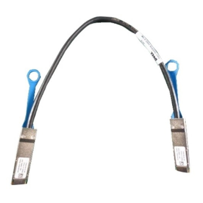 El DELL 470-ABPW Cable de fibra óptica e InfiniBand 0,5 m QSFP28 Negro tiene conectores QSFP28 macho en ambos extremos.