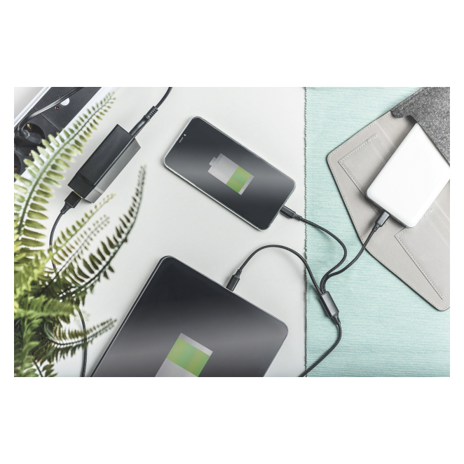 El Digitus Cable de carga 3 en 1 ofrece una serie de beneficios que lo convierten en un accesorio indispensable para cargar varios dispositivos. Su capacidad de soporte para diferentes tipos de conectores como USB-C, micro-USB u 8 pines lo hace ideal para usuarios con múltiples dispositivos. Su trenzado de nylon no solo mejora la durabilidad, sino también proporciona una mayor estabilidad y seguridad. Poder cargar varios dispositivos a la vez es posible gracias a este cable universal.