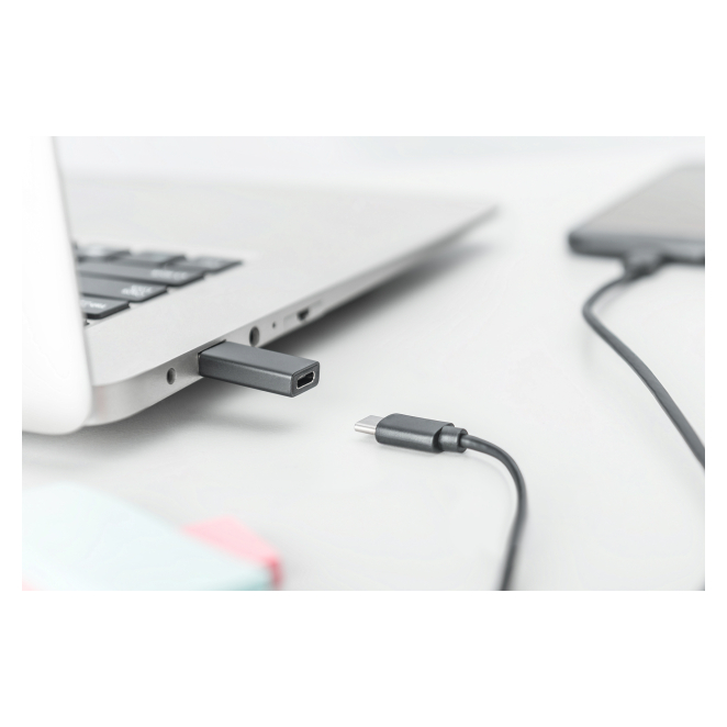 El adaptador Digitus USB Type-C ofrece numerosos beneficios, destacando su capacidad para transferir datos a alta velocidad y cargar dispositivos rápidamente. Su diseño robusto asegura durabilidad y resistencia. Gracias a su conector hembra USB-C a prueba de polaridad inversa, se puede utilizar por ambos lados. Además, este adaptador es compatible con versiones anteriores de USB, lo que facilita la conectividad eficiente con una variedad de dispositivos.