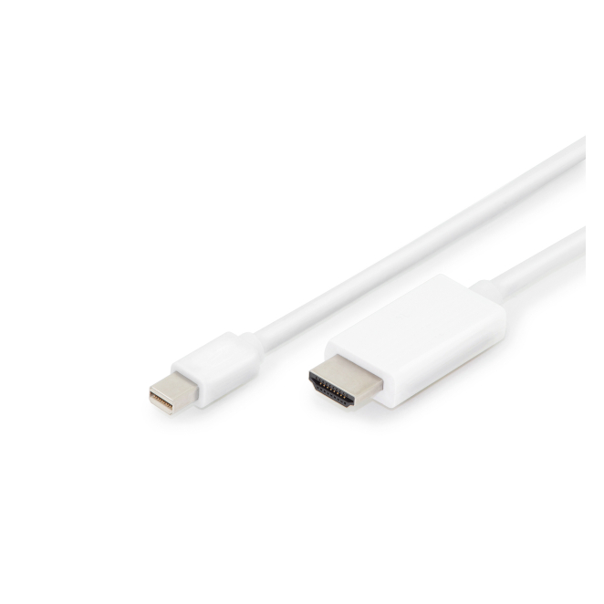 Digitus Cable adaptador mini DisplayPort a HDMI tipo A, modelo AK-340304-020-W, ideal para conectar dispositivos con mDP a pantallas HDMI.